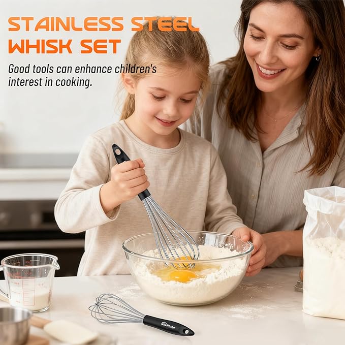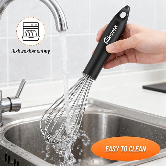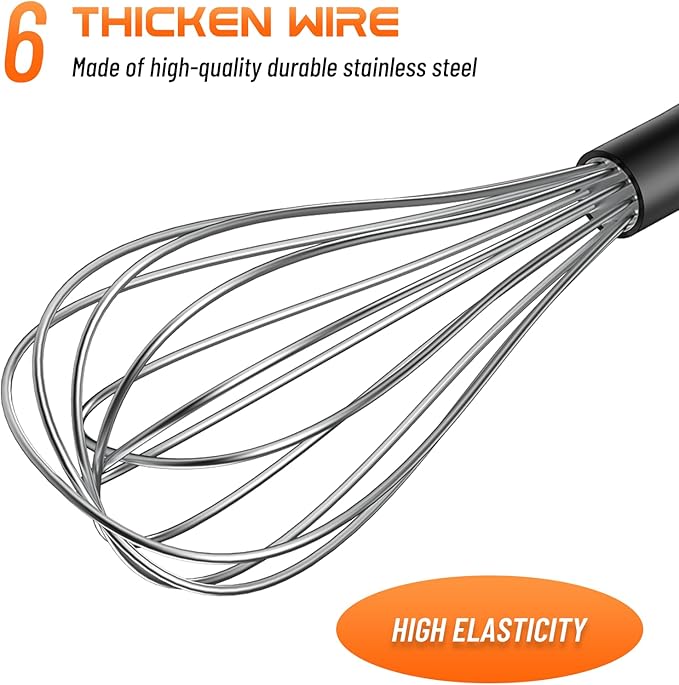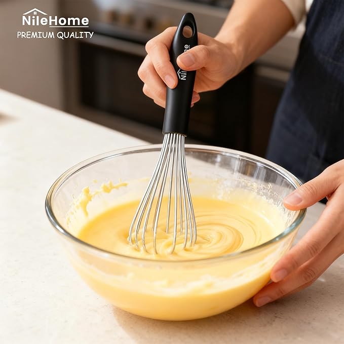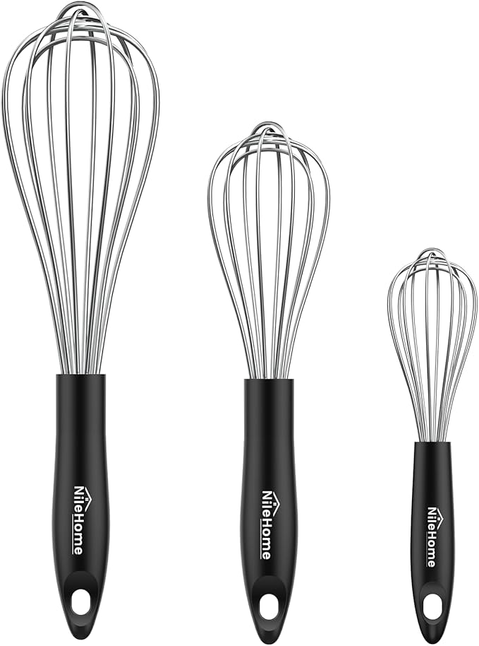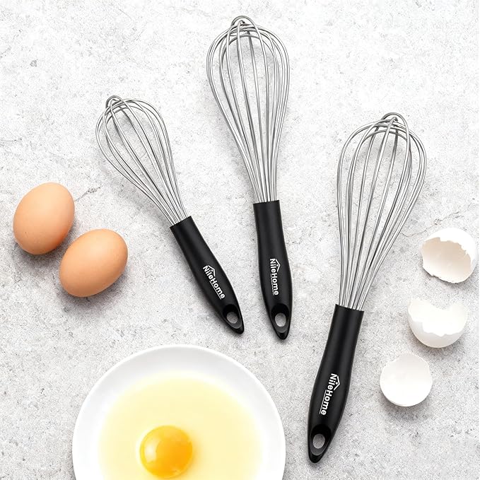 NileHome Silicone Whisk Set 8" 10" 12", 3 Pack Kitchen Whisk Kitchen Wisk Wire Whisks for Cooking, Whisking, Blending, Beating, Stirring-Black Silver
