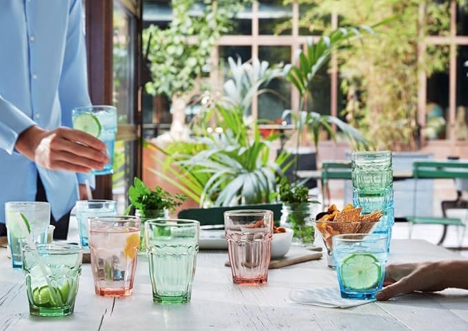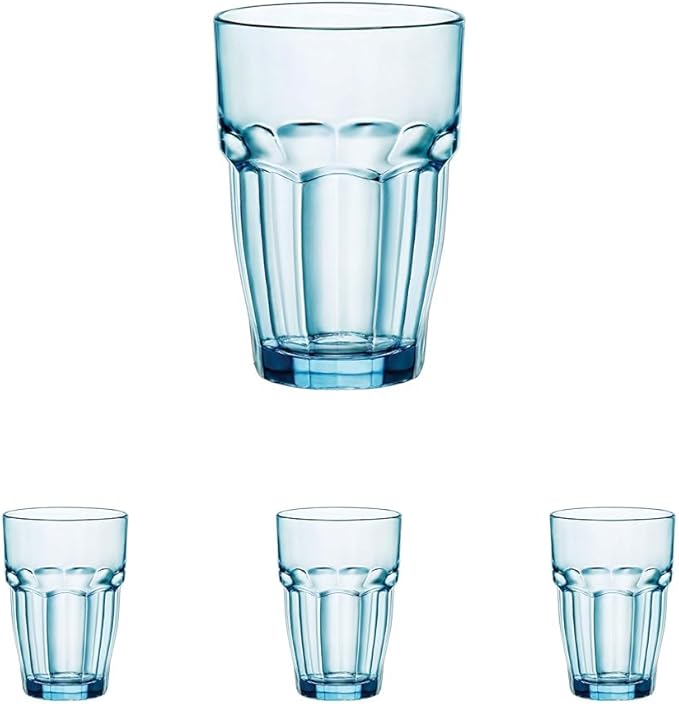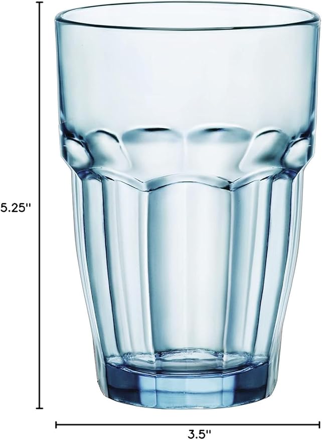 Bormioli Rocco Rock Bar 12.5 oz. Long Drink Stackable Tempered Beverage Glasses for Cold Drinks, Water, and Cocktails, Set of 6, Ice Blue (Pack of 4)