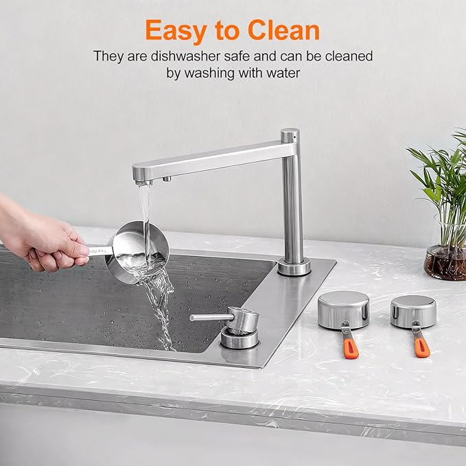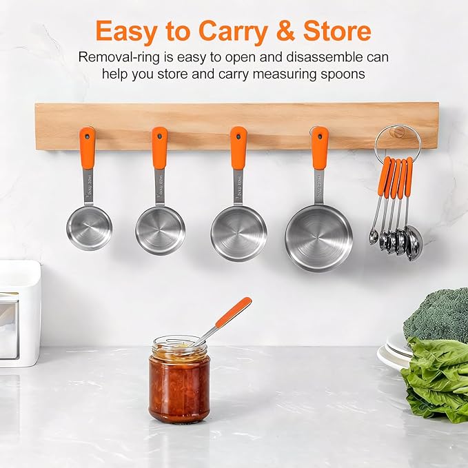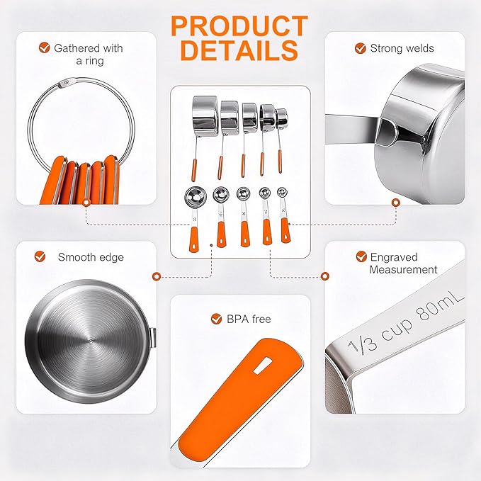 Measuring Cups and Spoons Set Stainless Steel 10 Piece for Cooking and Baking (5 Cups + 5 Spoons, Orange Handle)