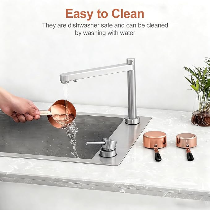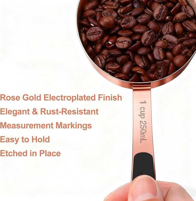 Measuring Cups and Spoons Set, Rose Gold Plated Stainless Steel 10 Piece for Cooking and Baking (5 Cups + 5 Spoons RoseGold)