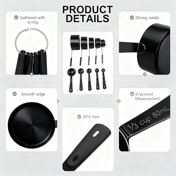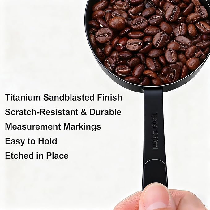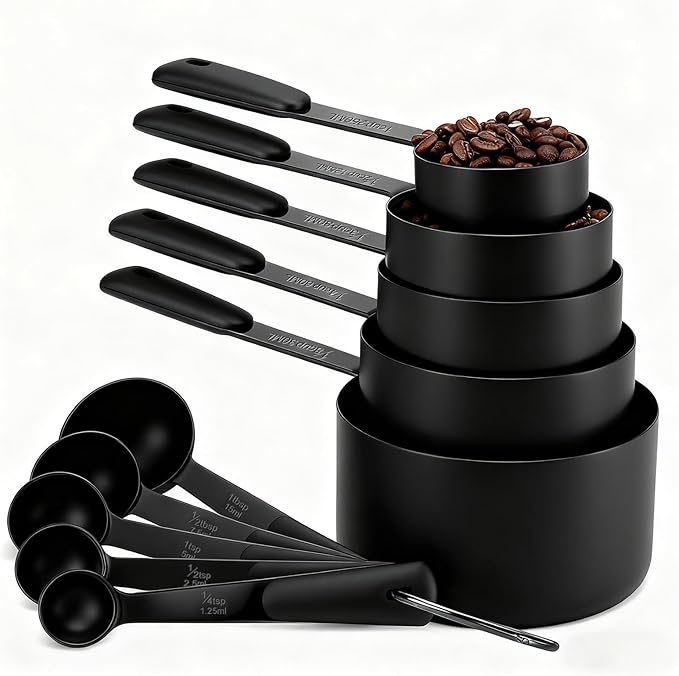 Measuring Cups and Spoons Set, Titanium-Plated Matte Black Stainless Steel 10 Piece for Cooking and Baking (5 Cups + 5 Spoons All Black)