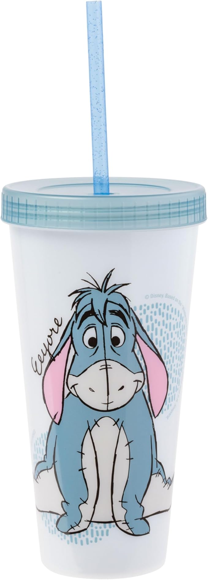 Silver Buffalo Disney Winnie the Pooh 4 Count Color Changing Plastic Tumblers Featuring Eeyore, Winnie the Pooh, Tigger, and Piglet, 24 Ounces (Pack of 12)