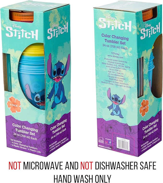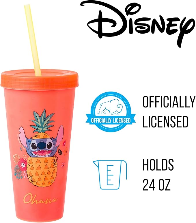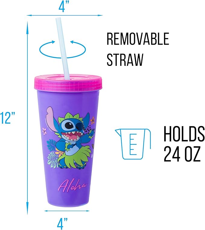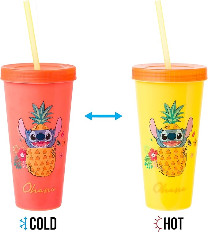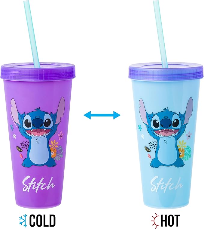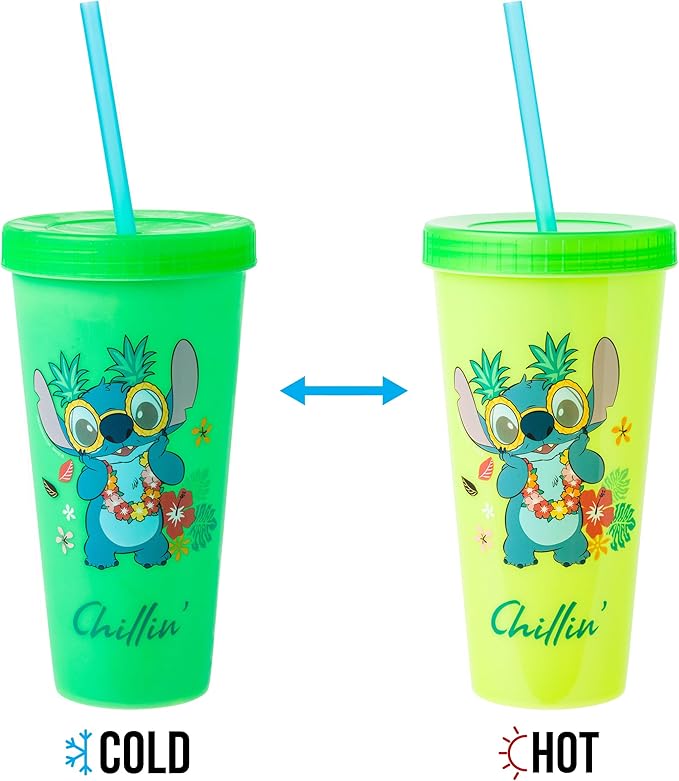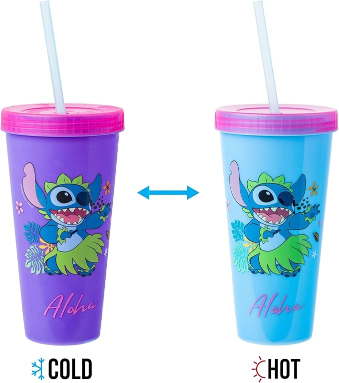 Silver Buffalo Disney Lilo and Stitch Tropical Poses Color Change Plastic Tumbler, 24 Ounces (Pack of 48)