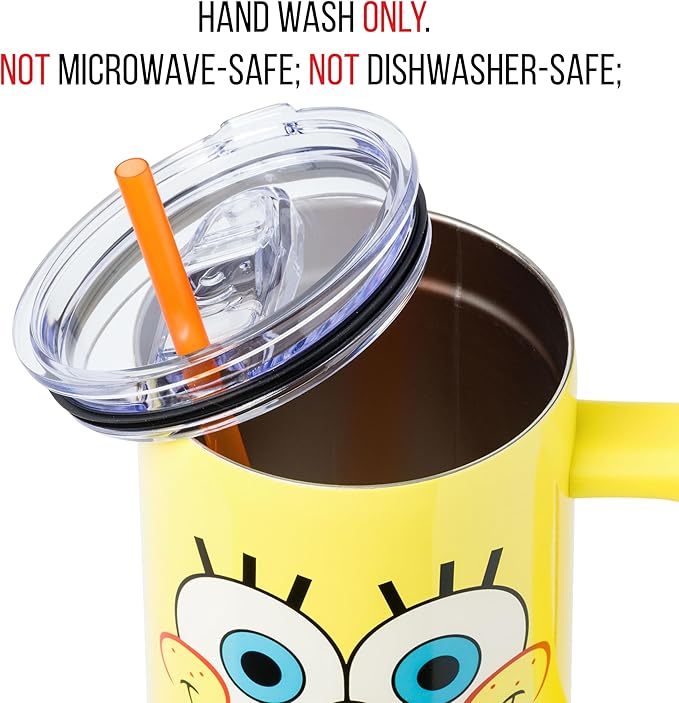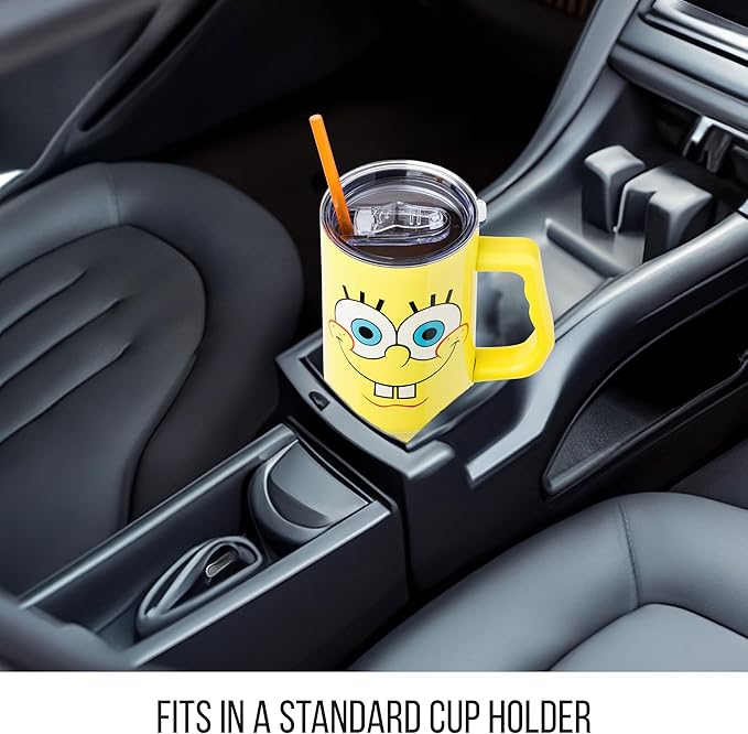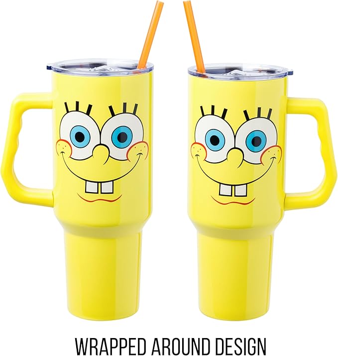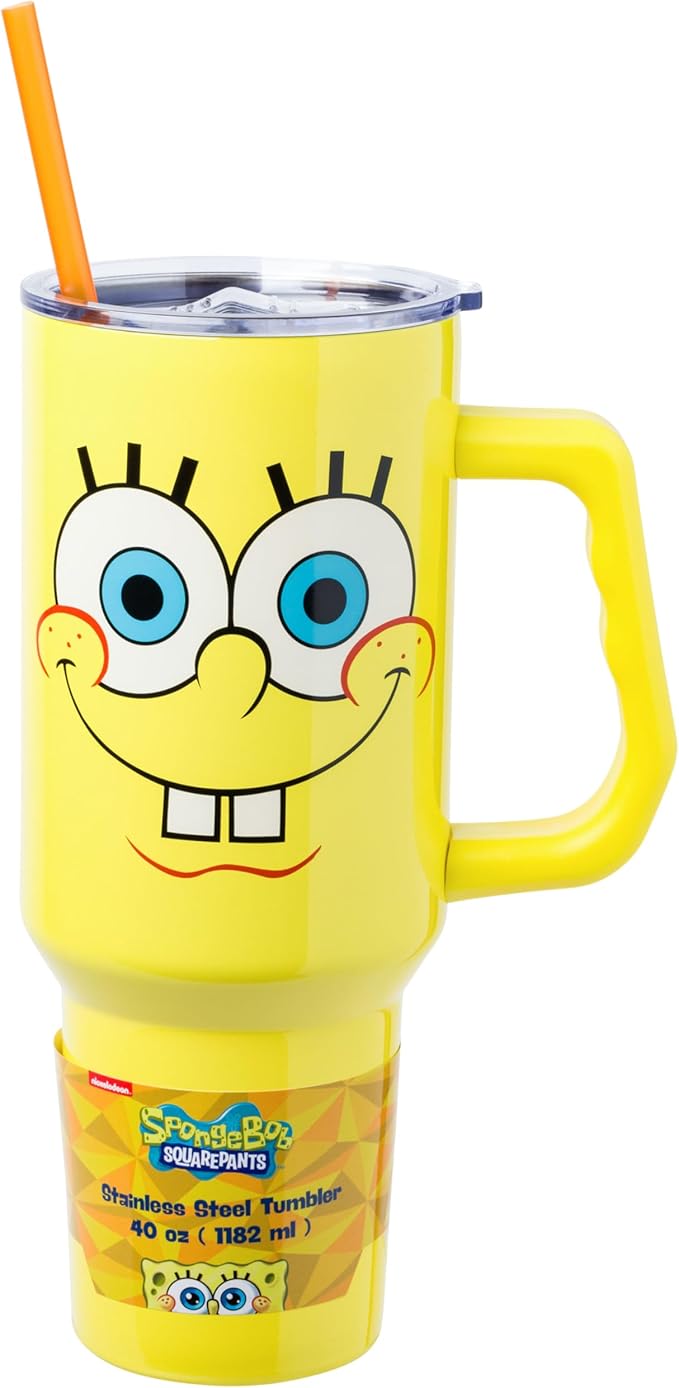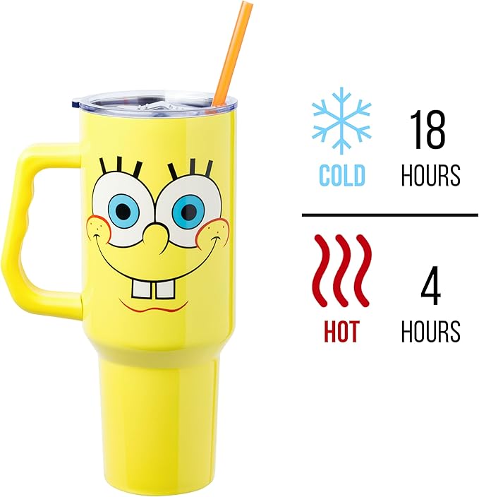 Silver Buffalo SpongeBob SquarePants Stainless Steel Tumbler with Handle, Fits in Standard Cup Holder, 40 Ounces (Pack of 12)