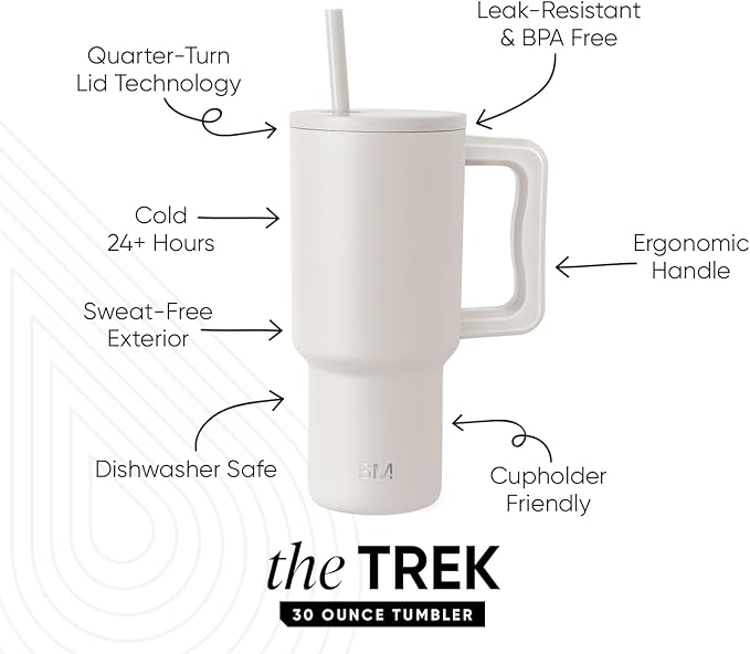 Simple Modern 30 oz Trek Tumbler with Handle and Straw Lid | Cup Holder Friendly Insulated Stainless Steel Travel Mug | Almond Birch (Pack of 12)