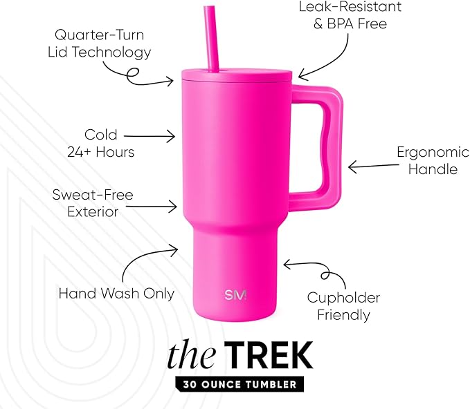 Simple Modern 30 oz Trek Tumbler with Handle and Straw Lid | Cup Holder Friendly Insulated Stainless Steel Travel Mug | Raspberry Vibes (Pack of 12)