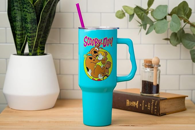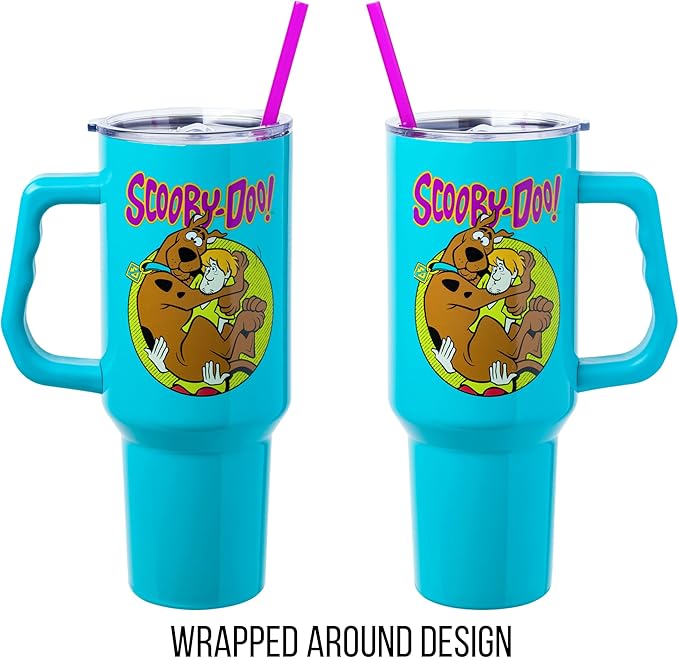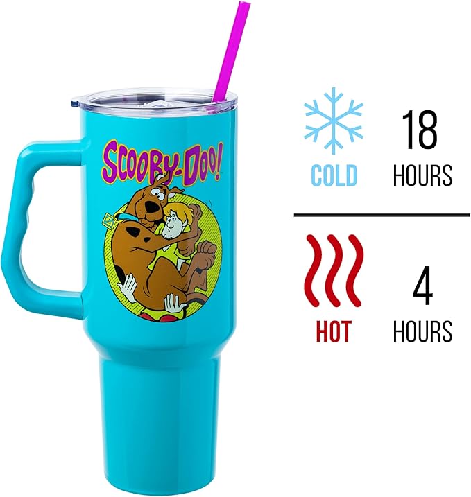 Silver Buffalo Scooby-Doo Stainless Steel Tumbler with Handle Featuring Shaggy and Scooby-Doo, Fits in Standard Cup Holder, 40 Ounces (Pack of 12)