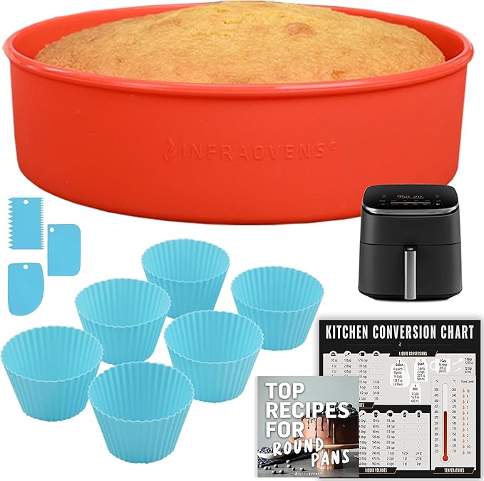 INFRAOVENS Air Fryer Baking Pan Set For Cosori TurboBlaze 9-in-1 6qt, Freezer Airfryer Bakeware Sets with Cupcake Liners & Kitchen Conversion Chart, Nonstick Round Cake Molds for Baking