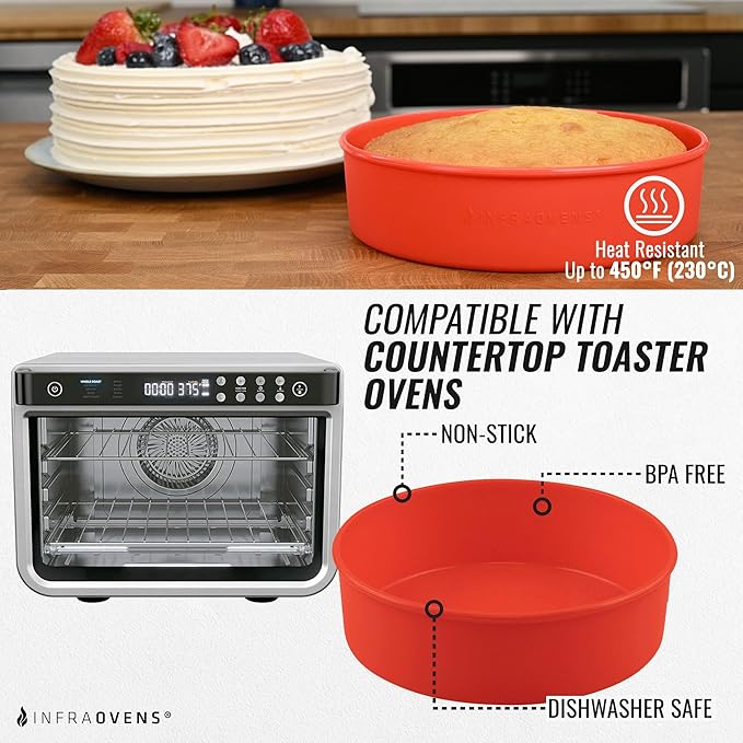 Air Fryer Baking Pan For Ninja Foodi XL Pro DT200, Double Oven with FlexDoor DCT400, Prestige Smart XL, Toaster Oven Bakeware Sets with Cupcake Liners & Conversion Chart, Nonstick Round Cake Molds