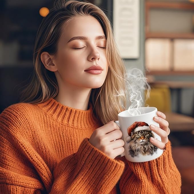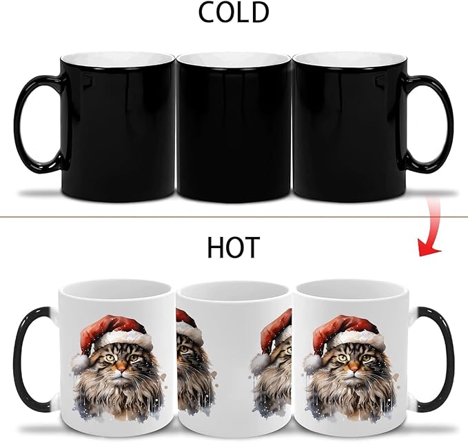 Caliamary Heat Changing Mug, Funny Cat Heat Changing Ceramic Coffee Mug, 11 oz Heat Sensitive Color Changing Coffee Mug Cup, Cute Xmas Gift Mug for Women Men Kids… (Brown cat)