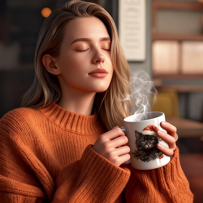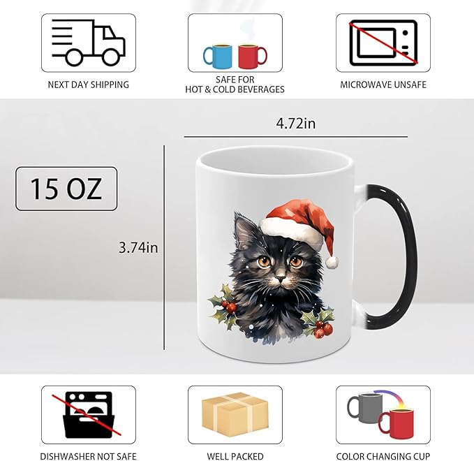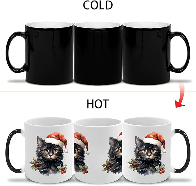 Caliamary Heat Changing Mug, Funny Cat Heat Changing Ceramic Coffee Mug, 11 oz Heat Sensitive Color Changing Coffee Mug Cup, Cute Xmas Gift Mug for Women Men Kids… (Black cat)
