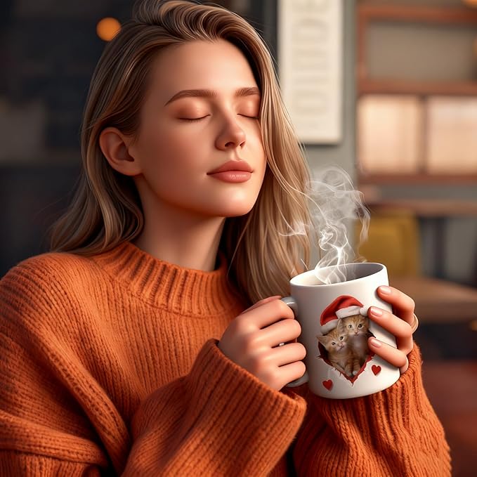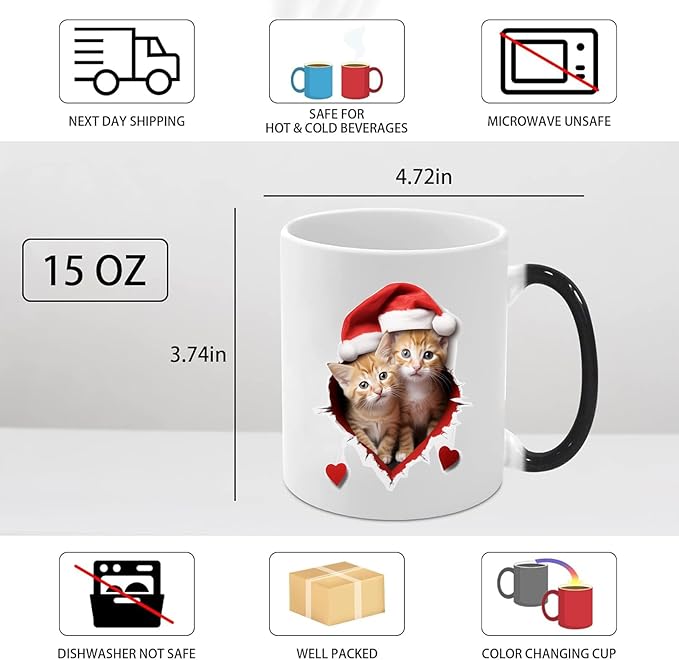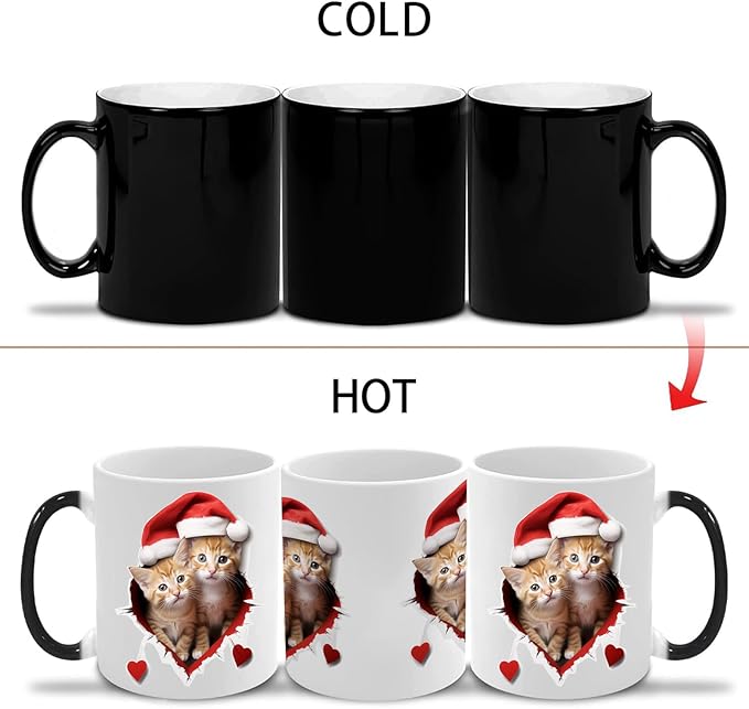 Caliamary Heat Changing Mug, Funny Cat Heat Changing Ceramic Coffee Mug, 11 oz Heat Sensitive Color Changing Coffee Mug Cup, Cute Xmas Gift Mug for Women Men Kids… (Two cats)