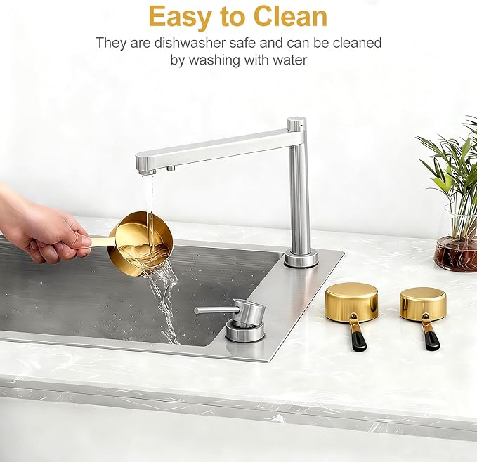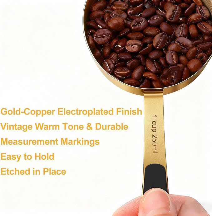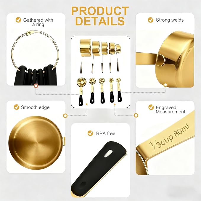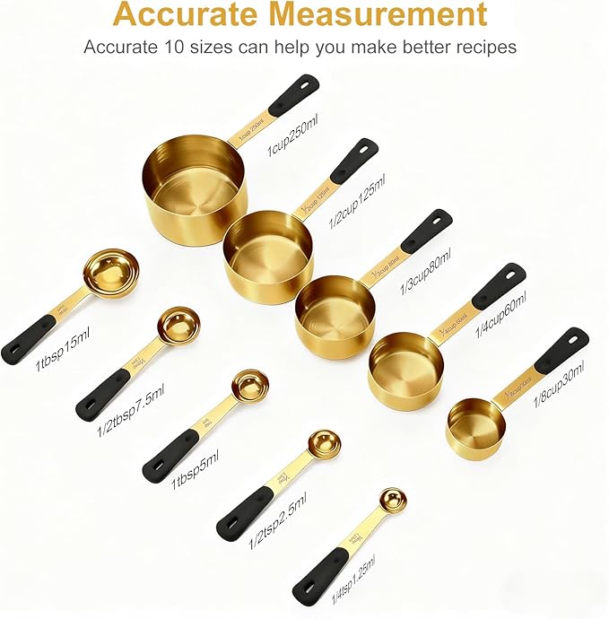 Measuring Cups and Spoons Set, Gold Electroplated Stainless Steel 10 Piece for Cooking and Baking (5 Cups + 5 Spoons Gold)