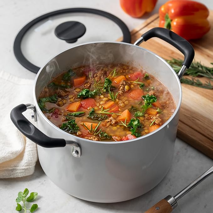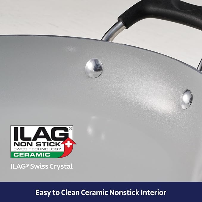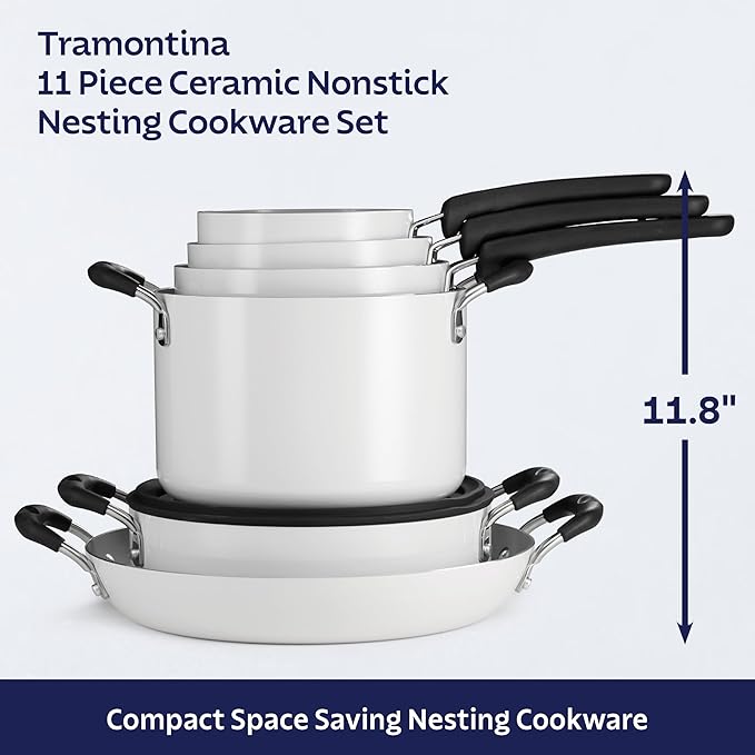 Tramontina Ceramic Non Stick 11-Piece Nesting Pots and Pans Set with Lids - Stackable Nonstick Cookware Set, Dishwasher and Oven Safe, White