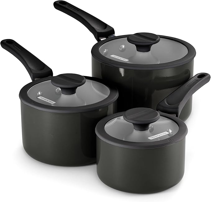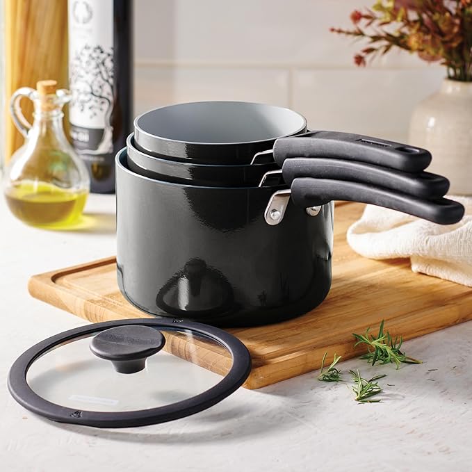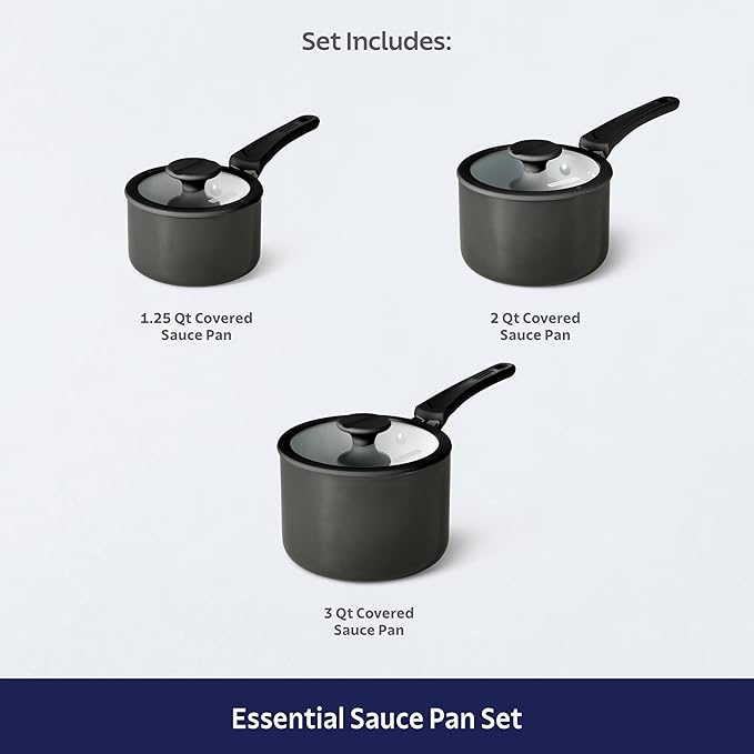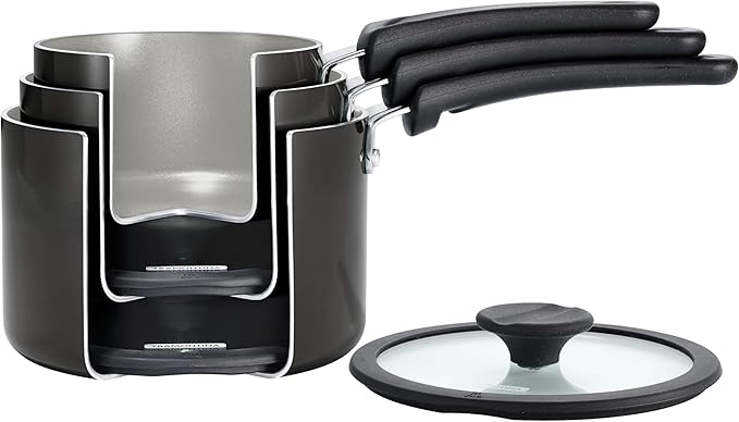 About This 6-Piece Set Includes: 1.25-quart, 2-quart, and 3-quart covered saucepans for versatile cooking Space Saving Nesting Design: Stackable cookware... Read more