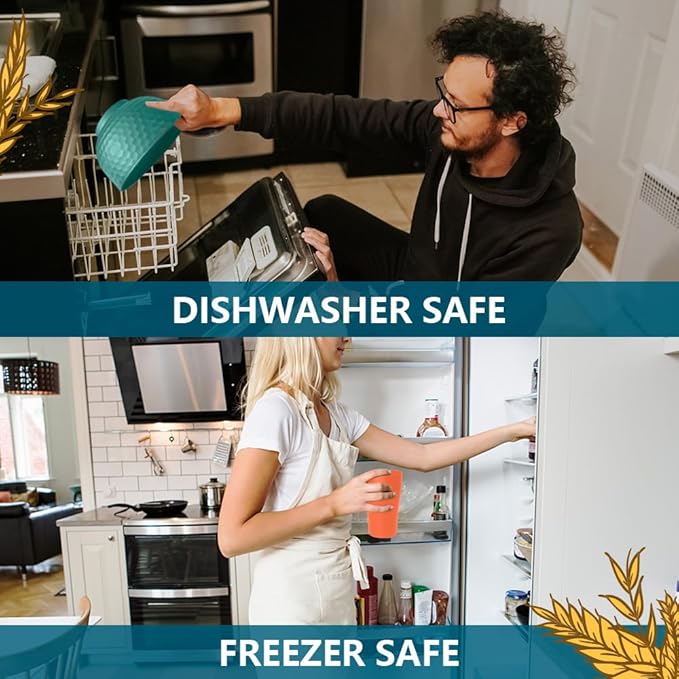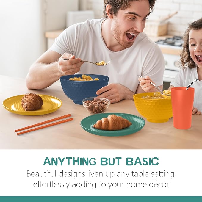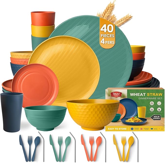 Teivio 40-Piece Kitchen Plastic Wheat Straw Dinnerware Sets for 4, Dinner Plates, Dessert Plate, Cups, Flatware, Dishwasher Safe, Colorful Unbreakable Apartment Outdoor RV Dishes, Autumn Multicolor