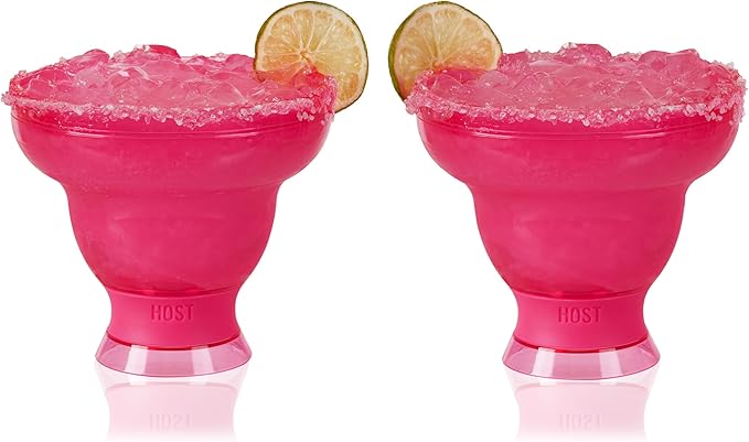 Host FREEZE Margarita Cocktail Glasses, Frozen Cup Double Wall Plastic Margarita Glasses Drinking Set Modern Drinking Glasses 12oz Punch Pink Set of 2 (Pack of 6)