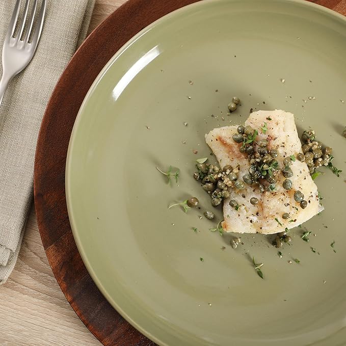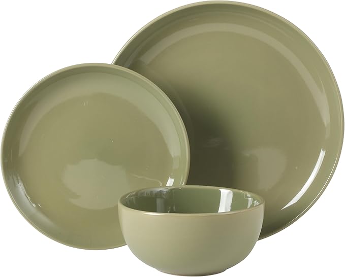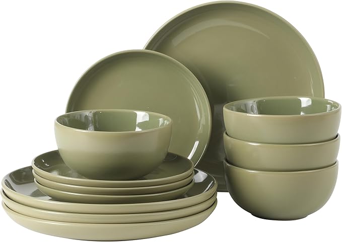 Gibson Home Rockaway 12 Piece Plates and Bowls Matte Outside/Shiny Inside Glaze Service for 4 Dinnerware Set - Green - Dishwasher and Microwave Safe