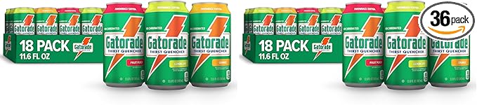 About This The information below is per-pack only Includes 18 (11.6 fl oz) cans of Gatorade Thirst Quencher Sports Drink,... Read more